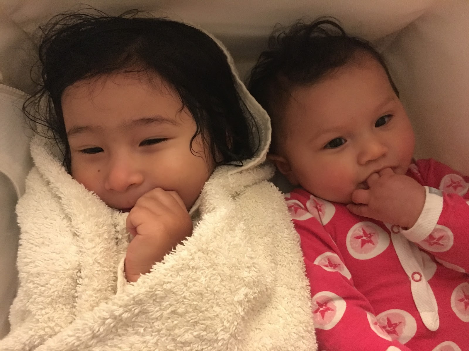 Sleeping and napping has been a bit more consistent these days. She's down in her snuzpod by 7 and wakes up around 7. Naps are around 9am and then one long afternoon nap or 2 small ones. We're planning to transition her to her big crib in her own room in the next month or so as she'll grow out of her snuzpod soon. I'll definitely miss her sleeping right next to me, but it's also time to move Amelie into her own bed too.